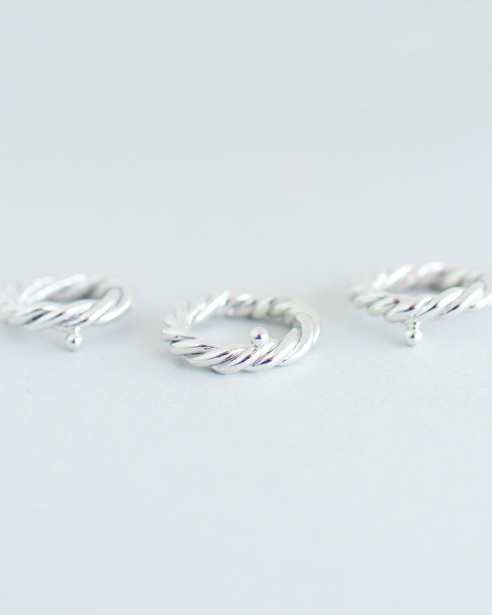 3本の線をねじって作られた有機的な造形とボリューム感のあるTsutaリング。
