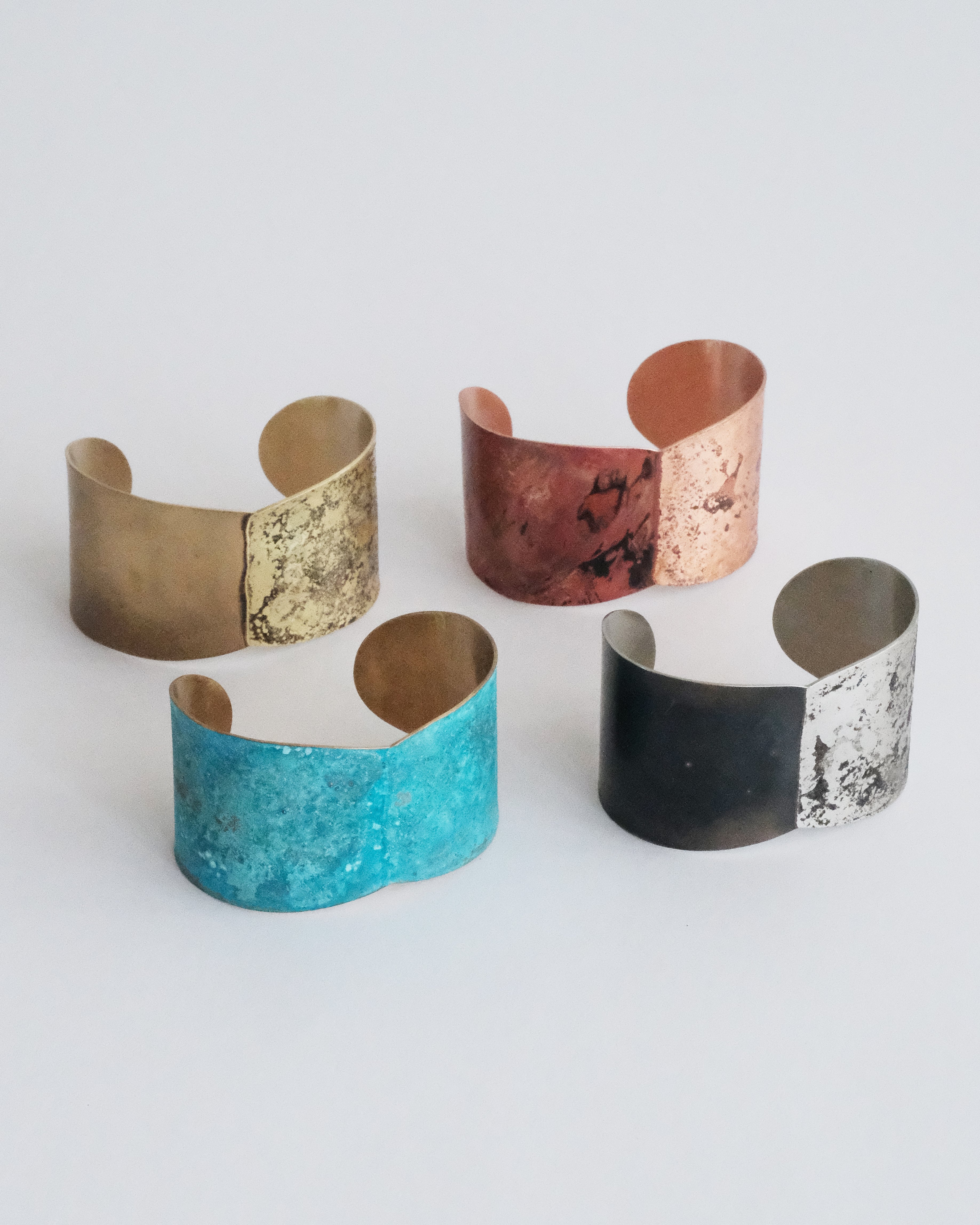 古物のような質感のCOLORSバングル60は、左右で表情に違いがでるように焼きつけを施したデザインです。